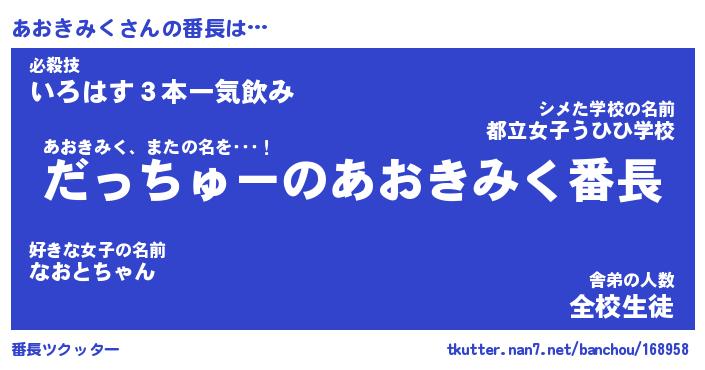 | 伝説のあだ名 | 『伝説のスナイパーあおきみく』 |