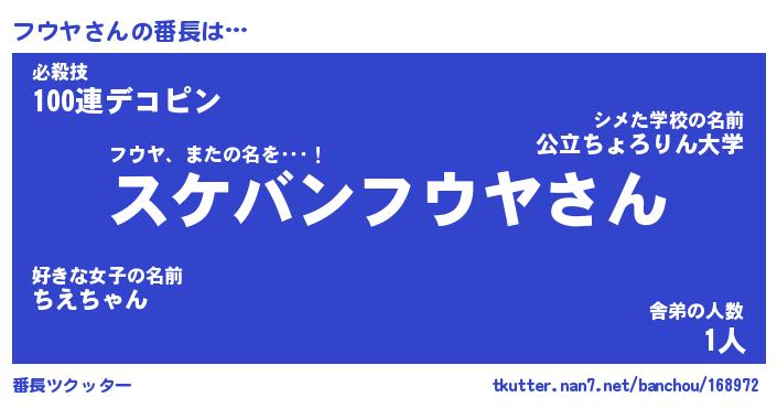| 意味不明あだ名 | 『ペロリンフウヤ』『フウヤフォーエバー』 |