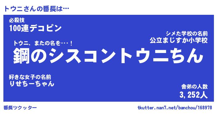 | 意味不明あだ名 | 『ペロリントウニ』『トウニフォーエバー』 |