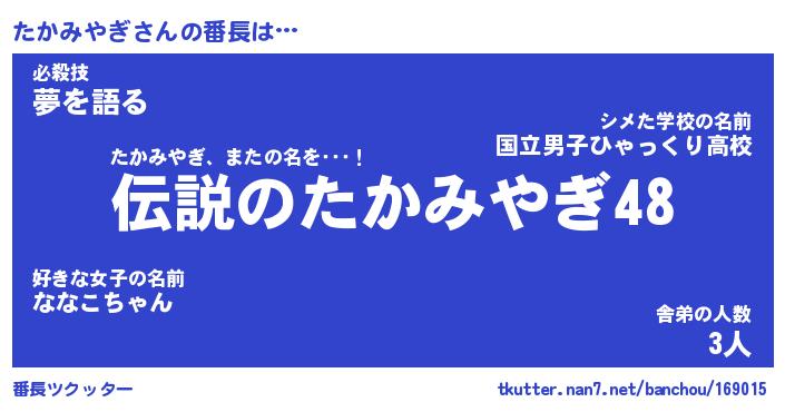 | 肩書あだ名 | 『たかみやぎ店長』『たかみやぎ国家主席』 |