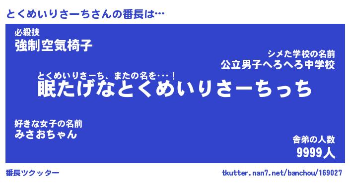 | 伝説のあだ名 | 『封印されしスナイパーとくめいりさーち』 |
