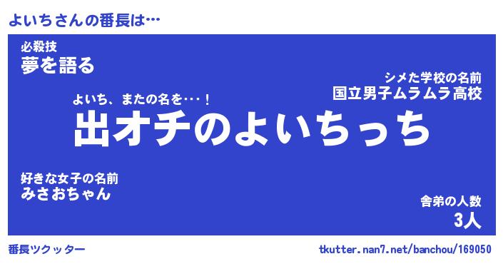 | ポケモン風あだ名 | 『ヨイチュウ』『ヨイチダネ』 |