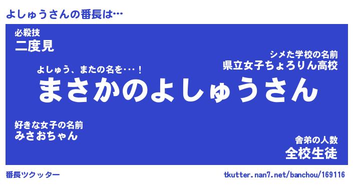 | 伝説のあだ名 | 『伝説のスナイパーよしゅう』 |