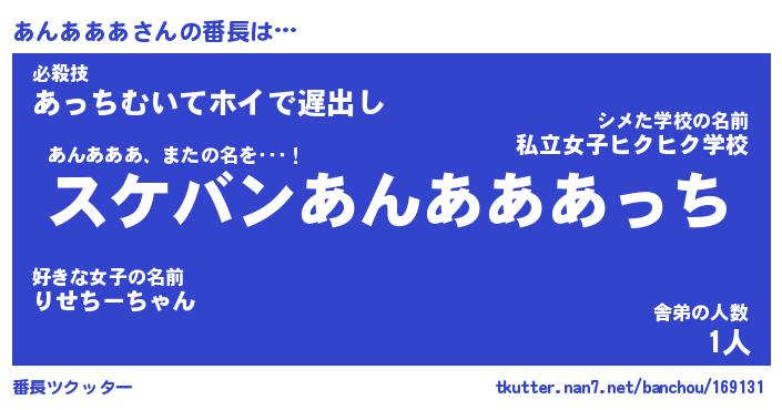 | ヘコむあだ名 | 『あんふぇ~』『酢こんぶ』『あんお』 |
