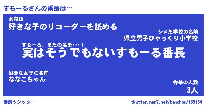 | 意味不明あだ名 | 『ペロリンすもーる』『永久保存すもーる』 |