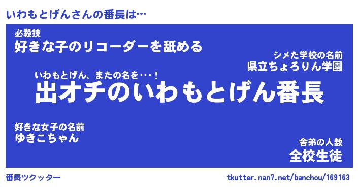 | 男性向けラノベタイトル風あだ名 | 『いわもとげんの憂鬱』 |