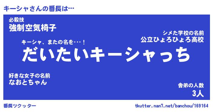 | ヒーロー風カッコイイあだ名 | 『スーパーキーシャ』『暗黒騎士キー』 |