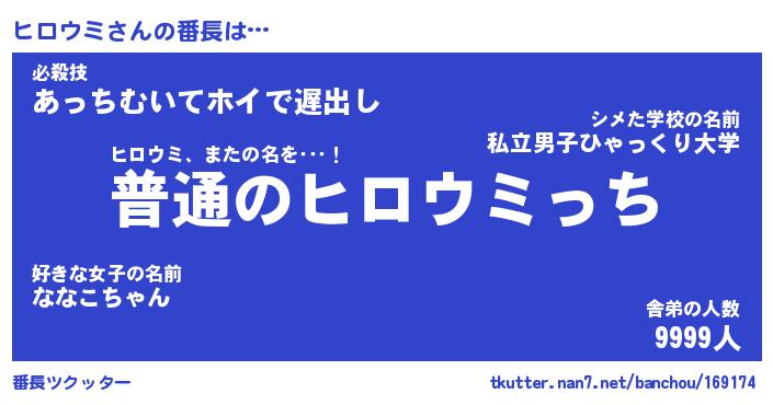 | 意味不明あだ名 | 『ペロリンヒロウミ』『永久保存ヒロウミ』 |