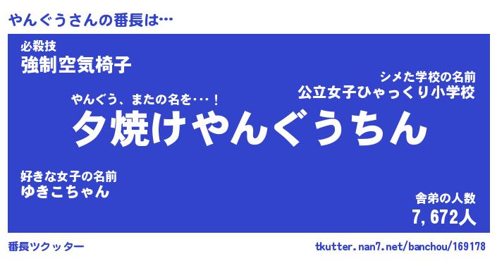 | 意味不明あだ名 | 『ペロリンやんぐう』『永久保存やんぐう』 |