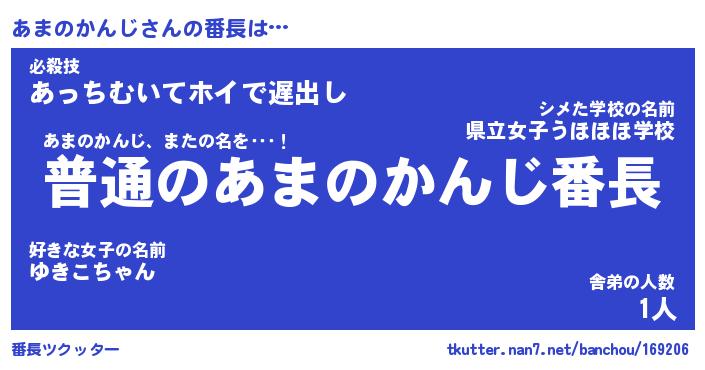 | 男性向けラノベタイトル風あだ名 | 『あまのかんじの憂鬱』 |