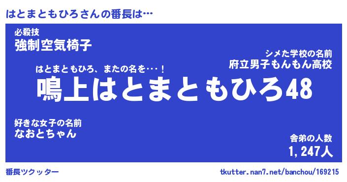 | ヘコむあだ名 | 『はとにゅー』『つくし』『はとっ子』 |