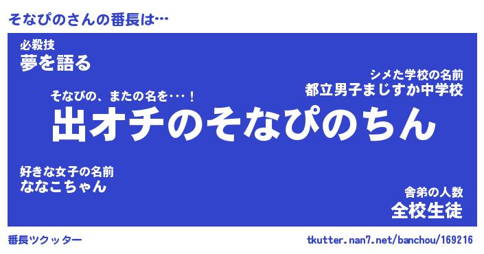 | 肩書あだ名 | 『そなぴの御曹司』『そなぴの総理大臣』 |
