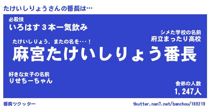 | 2回繰り返すあだ名 | 『たけたけ』『たたけけ』『なあなあ』 |