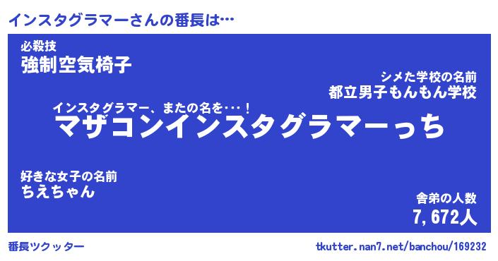 | 欧米人風あだ名 | 『マイケルインスタグラマー』 |