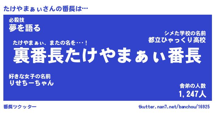 | 肩書あだ名 | 『たけやまぁぃCEO』『たけやまぁぃ大統領』 |