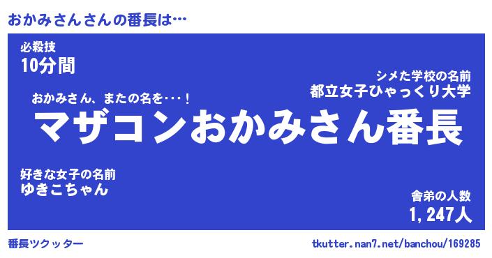 | ファンタジー風あだ名 | 『オカフェル』『エターナルオカミサンー』 |