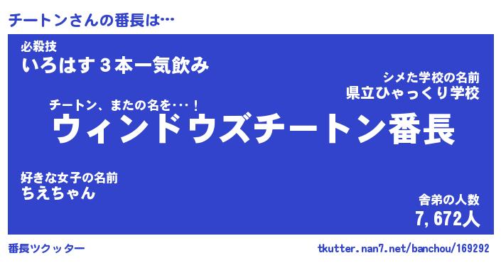 | 意味不明あだ名 | 『ペロリンチートン』『永久保存チートン』 |