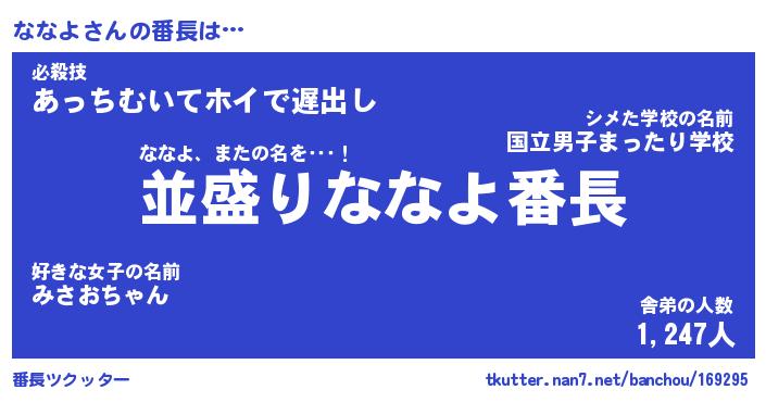 | ヘコむあだ名 | 『ななもー』『レバニラ』『ななお』 |