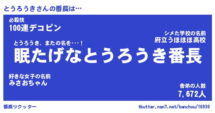 | 2回繰り返すあだ名 | 『とうとう』『ととうう』『ぬらぬら』 |