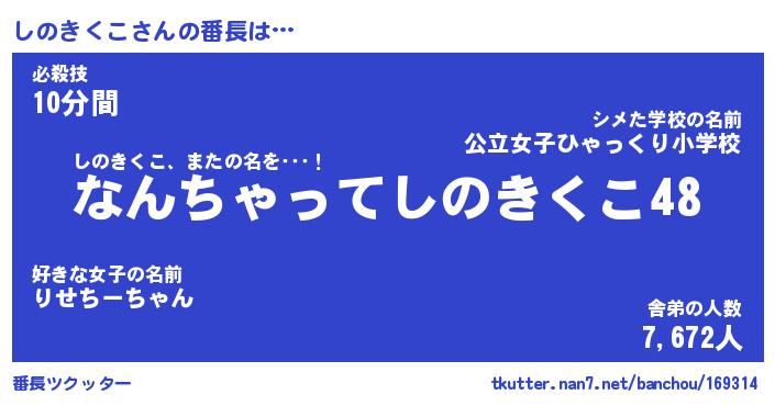 | ファンタジー風あだ名 | 『シノフェル』『エターナルシノキクコー』 |