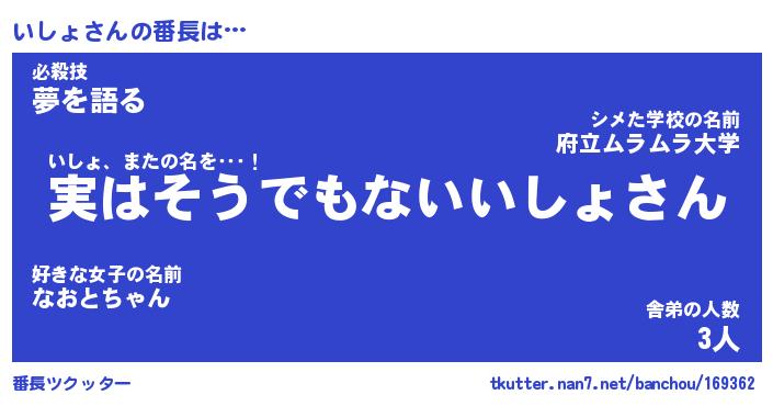 | ヒーロー風カッコイイあだ名 | 『スーパーイショ』『ウルトラいしょマン』 |