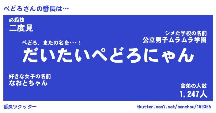 | ポケモン風あだ名 | 『ペドチュウ』『ペドロダネ』 |