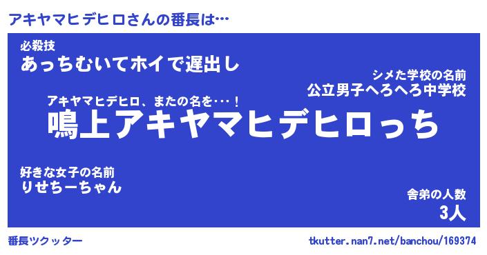 | 意味不明あだ名 | 『ペロリンアキヤマヒデヒロ』 |