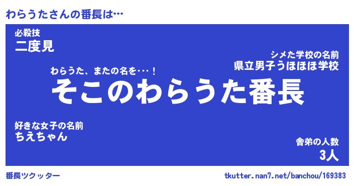 | ヒーロー風カッコイイあだ名 | 『スーパーワラウタ』『魔戒騎士ワラ』 |