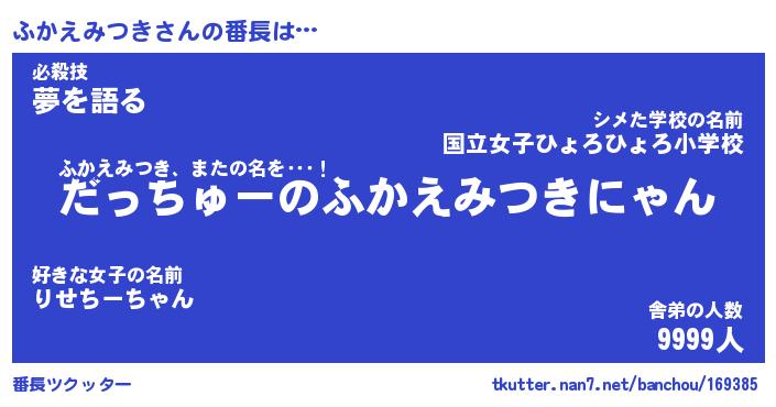 | 猫の名前『ふかえみつきにゃん』性別『雌』 |