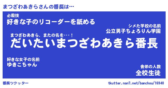 | 肩書あだ名 | 『まつざわあきら店長』 |