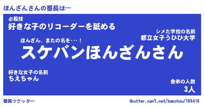 | 意味不明あだ名 | 『ペロリンほんざん』『永久保存ほんざん』 |