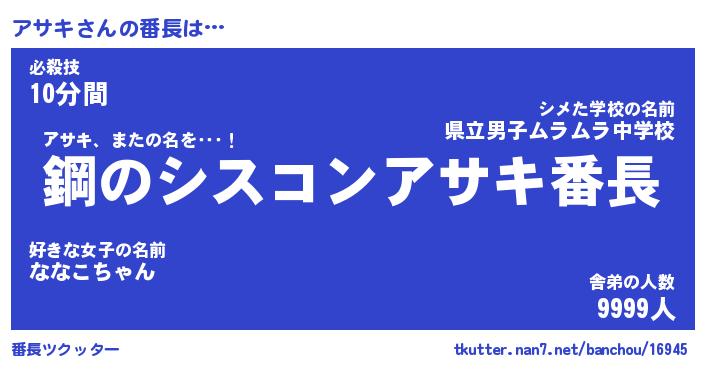 | ポケモン風あだ名 | 『アサチュウ』『アサキダネ』 |