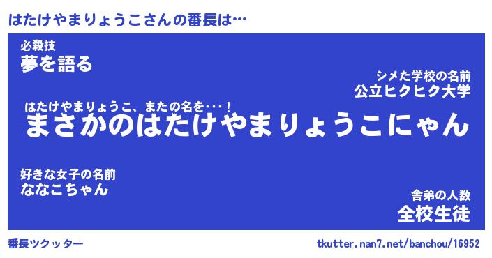 | ヒーロー風カッコイイあだ名 | 『スーパーハタケヤマリョウコ』 |