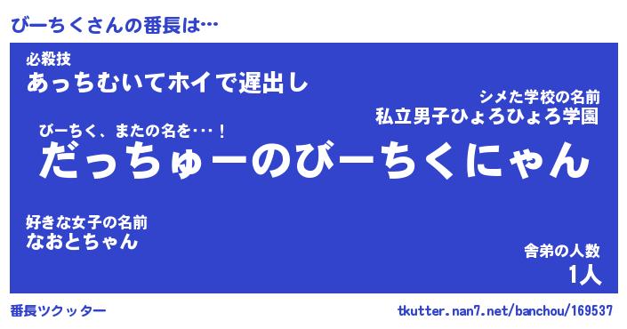 | 肩書あだ名 | 『びーちく店長』『びーちく大統領』 |