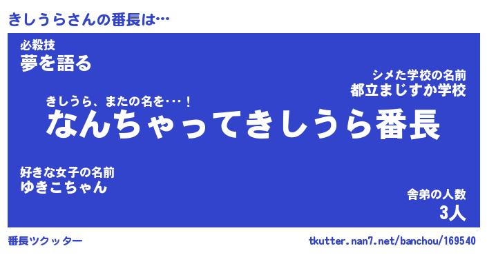 | 意味不明あだ名 | 『ペロリンきしうら』『永久保存きしうら』 |