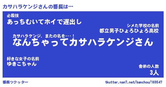 | 肩書あだ名 | 『カサハラケンジCEO』 |