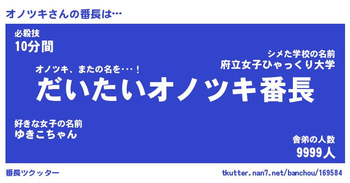 | ヒーロー風カッコイイあだ名 | 『スーパーオノツキ』『天弓騎士オノ』 |
