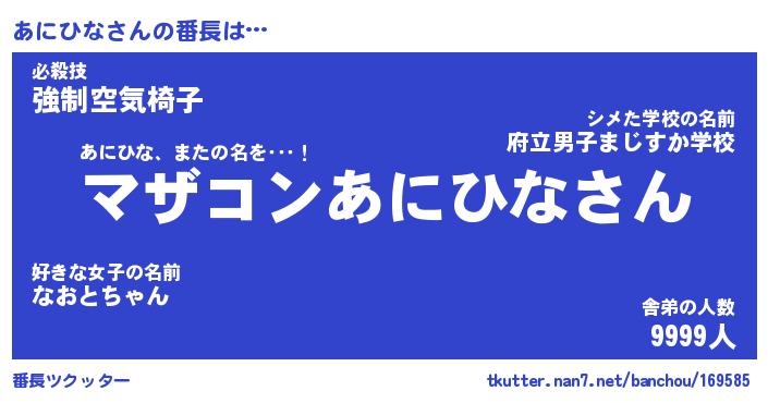 | ヘコむあだ名 | 『あににゅー』『牛乳』『あに太郎』 |