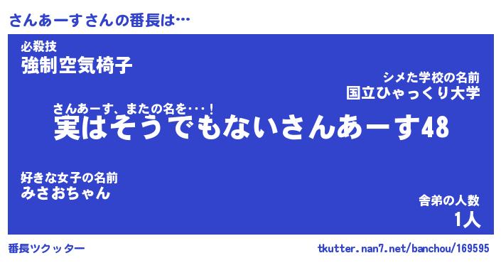 | 肩書あだ名 | 『さんあーす店長』『さんあーす総理大臣』 |