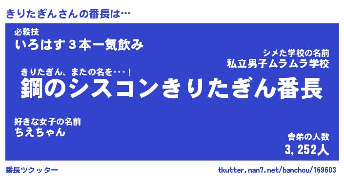 | 意味不明あだ名 | 『ペロリンきりたぎん』 |