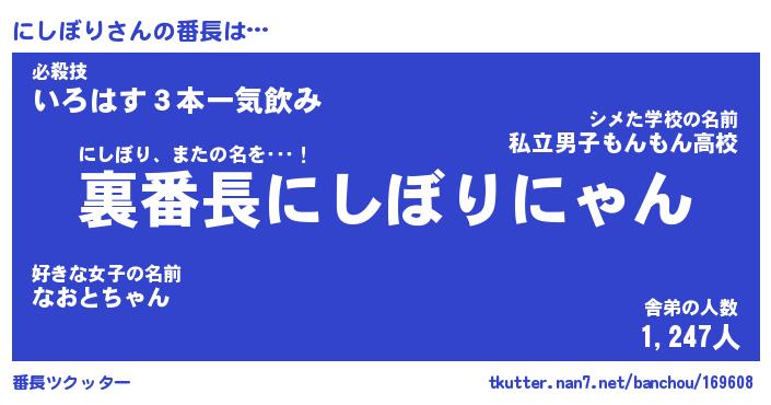 | ファンタジー風あだ名 | 『ニシフェル』『エターナルニシボリー』 |