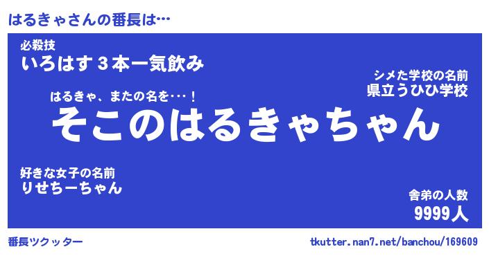 | 伝説のあだ名 | 『不死鳥のスナイパーはるきゃ』 |