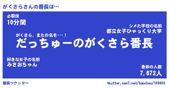 | ファンタジー風あだ名 | 『ガクフェル』『エターナルガクサラー』 |