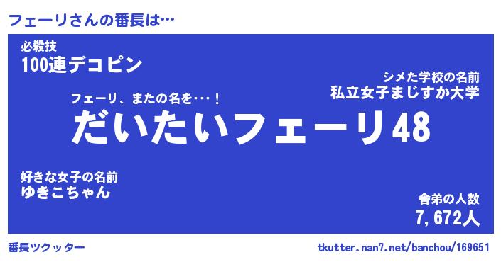 | 意味不明あだ名 | 『ペロリンフェーリ』『永久保存フェーリ』 |