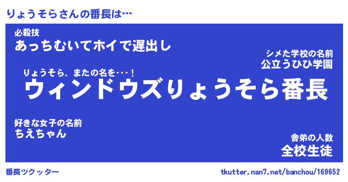 | 肩書あだ名 | 『りょうそら店長』『りょうそら国家主席』 |