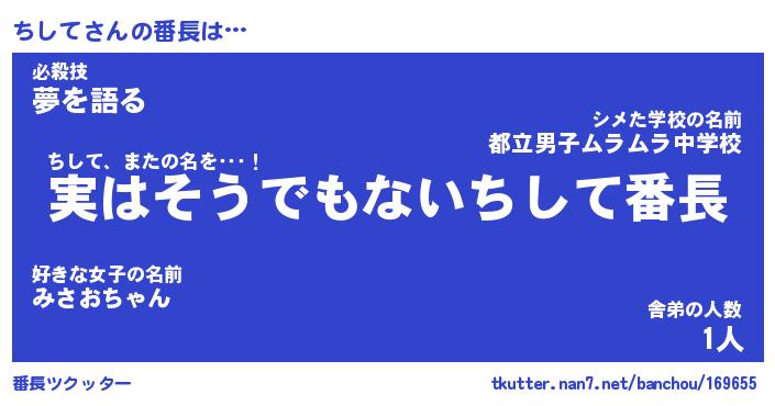 | ヒーロー風カッコイイあだ名 | 『スーパーチシテ』『ウルトラちしてマン』 |