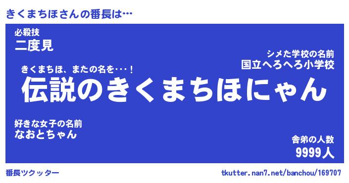 | ポケモン風あだ名 | 『キクチュウ』『キクマダネ』 |