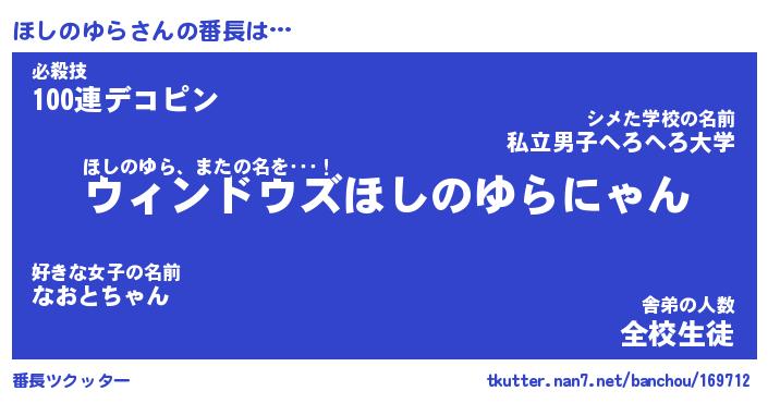 | 伝説のあだ名 | 『伝説のスナイパーほしのゆら』 |