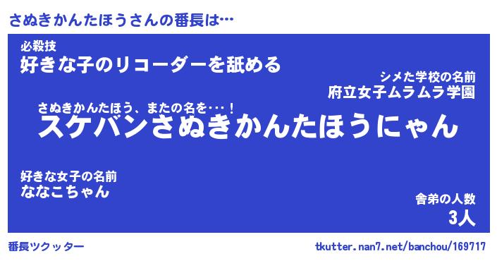 | 伝説のあだ名 | 『不死鳥のスナイパーさぬきかんたほう』 |