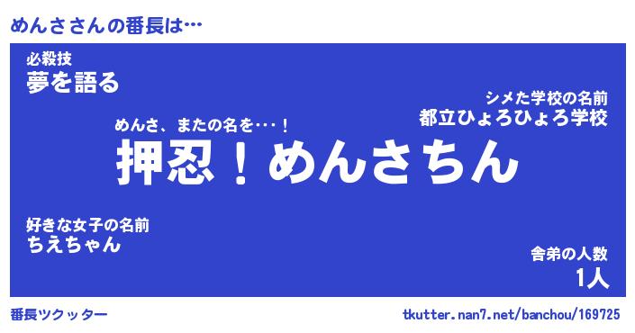 | 2回繰り返すあだ名 | 『めんめん』『めめんん』『いじいじ』 |